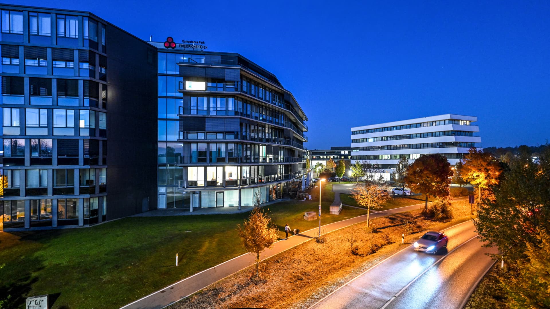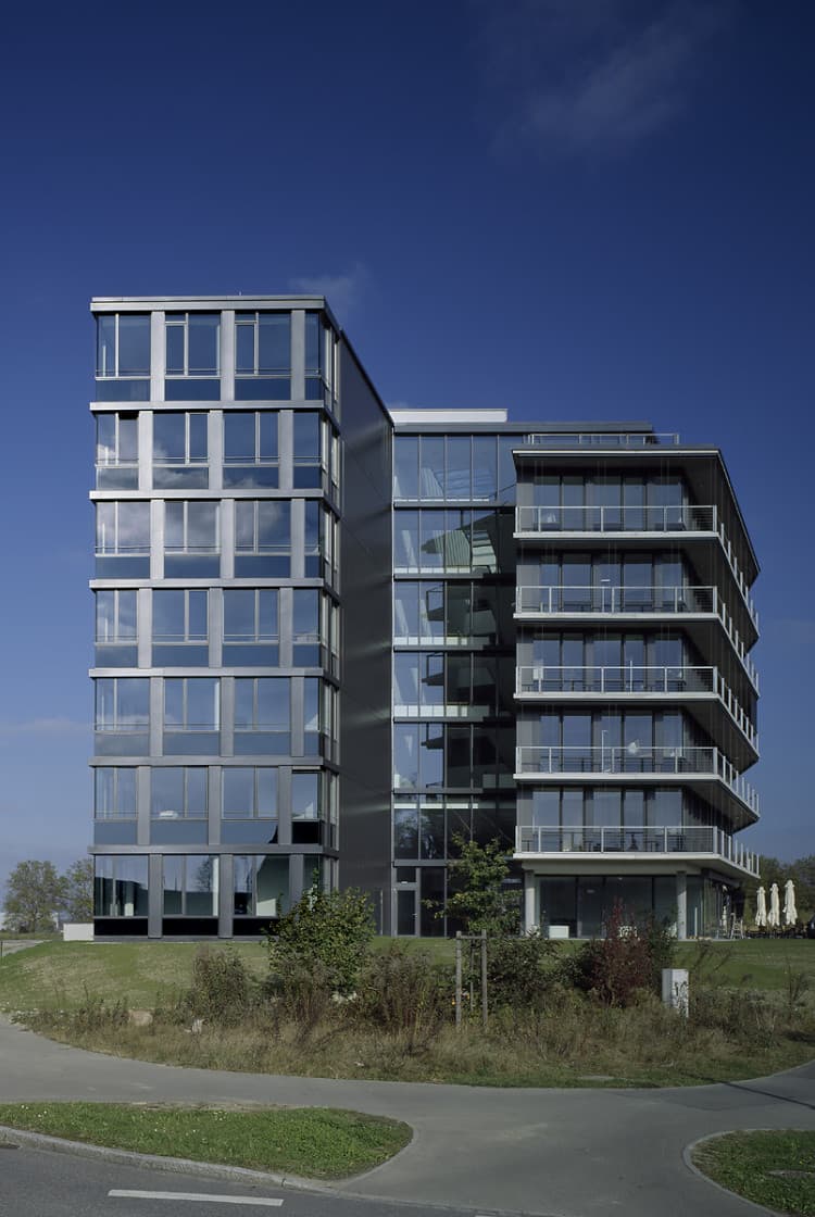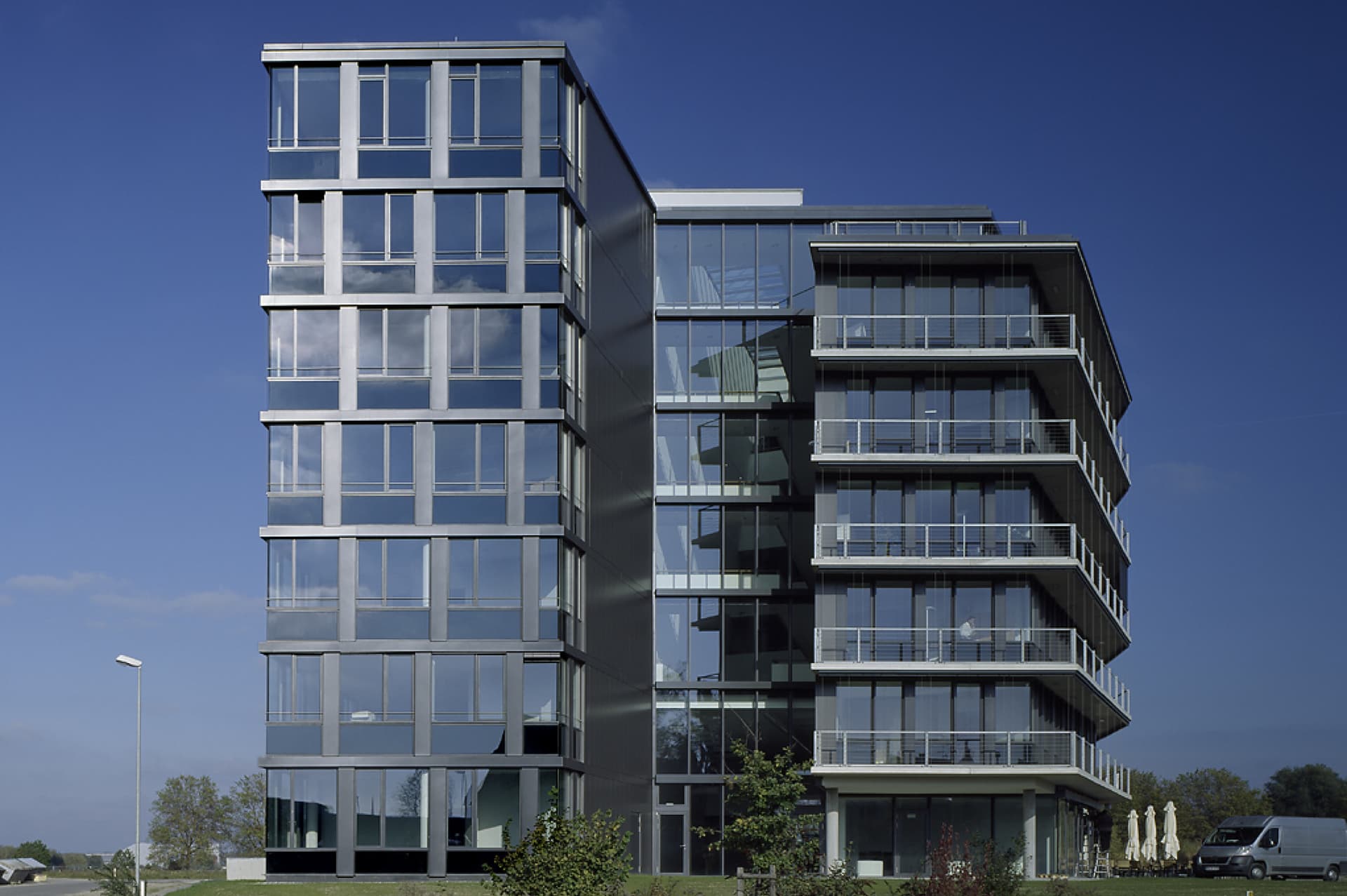 Der Standort des Competence Parks Friedrichshafen ist geprägt durch die Lage am Stadtrand. Es bildet den Kopfbau eines Betriebgebietes, das sich in unmittelbarer Nähe des Flughafens befindet und neu erschlossen wurde. .Das Gebäude besteht aus zwei gegeneinander verschobenen Baukörpern mit dazwischen liegender, sechsgeschoßiger Halle. Die Dynamik der Halle wird durch die geschossweise leicht gedrehten Galerien und die nach innen geneigte Nordwest – Wand erzeugt.