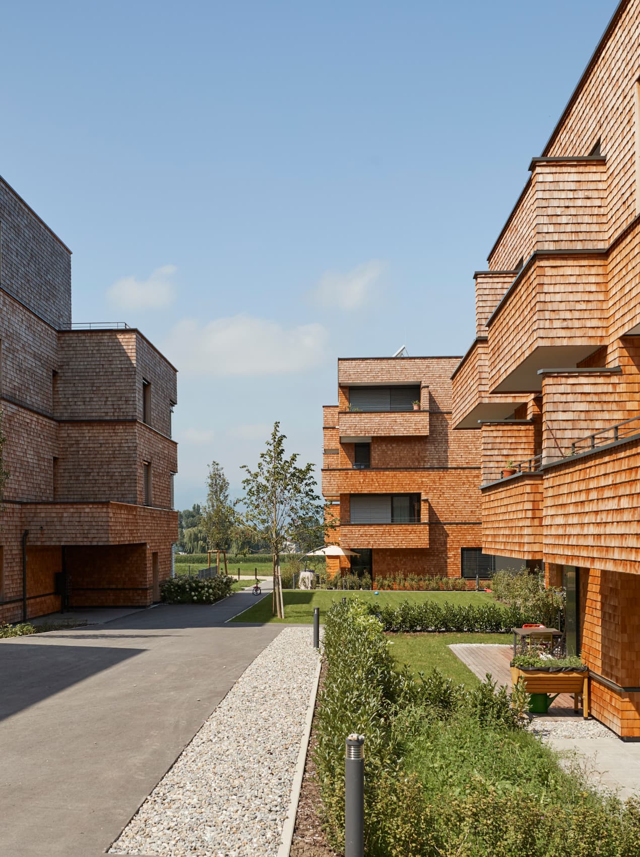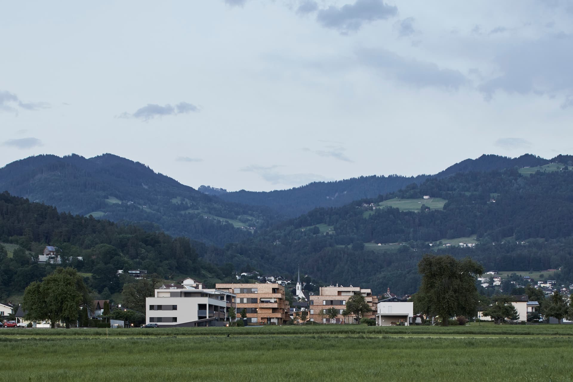 Die Wohnanlage am Ortsrand von Röthis, besteht aus sechs unterschiedlich groß dimensionierten Baukörpern. Mittels differenzierter Anordnung dieser zueinander, wurden diverse Außenbereiche mit Platzgestaltungen und Wegeführungen konzipiert, welche mit einem attraktivem Grünraum und Landschaftskonzept gestaltet wurden.